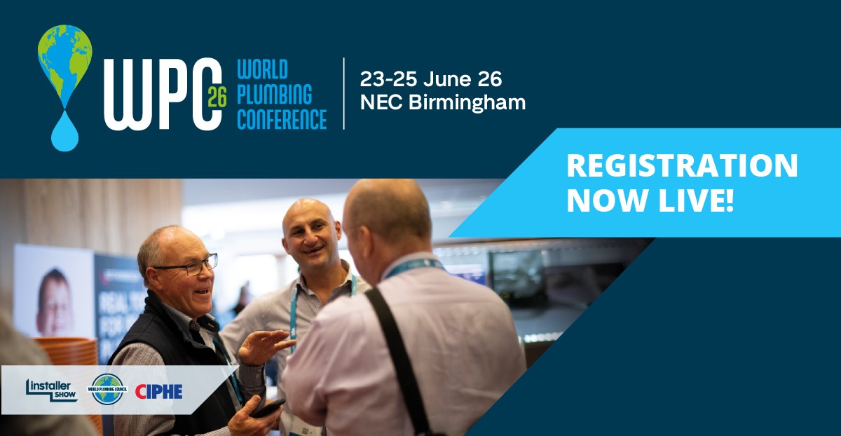 The 14th World Plumbing Conference (WPC26) will be jointly hosted by the Chartered Institute of Plumbing & Heating Engineering (CIPHE) and the World Plumbing Council at InstallerSHOW at the NEC, Birmingham, from 23–25 June 2026.